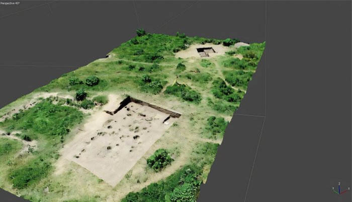 Drone image and 3D model of the Los Tres Cerros 1 site in the Paraná river delta. Credit: University of Tübingen