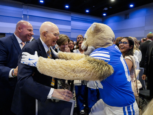 President Reese concluded his message: “At BYU’s Centennial Celebration 50 years ago, President Spencer W. Kimball expressed his vision that BYU would become a refining host for shining stars who would go out into the world and bless it. These past presidents are among those brilliant stars. They have served and illuminated this valley so magnificently. They have shown our students what it means to enter to learn and go forth to serve.”